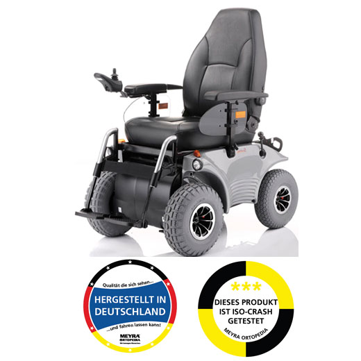 Meyra Optimus 2 der kraftvolle Outdoor E-Rollstuhl Artikel mit individueller Beratung und Bestellungfür unsere regionalen Kunden (Koblenz +100km) So funktioniert es: Kontaktieren Sie uns bevorzugt per E-Mail oder Kontaktformular und teilen Sie uns Ihre Kontaktdaten sowie Ihre Anschrift mit. Unser Experte für den entsprechenden Fachbereich wird sich zeitnah bei Ihnen melden, um einen Beratungstermin zu vereinbaren. Nach der persönlichen Beratung erstellen wir ein maßgeschneidertes Angebot für Sie und bestellen das passende Produkt. Dieser exklusive Service gewährleistet, dass Sie das Produkt erhalten, das perfekt zu Ihnen passt. Wir freuen uns darauf, Sie persönlich zu unterstützen! Das Aussenfahrer-Kraftpaket, unschlagbare Fahreigenschaften und Zuverlässigkeit Leistungsstarker 950W Motor Durch Einzelradfederung und hohe Steigfähigkeit Hervorragende Traktion und Geländegängigkeit Komfortable Bedienung mit R-NET Ideale Fahreigenschaften und Einsatz großer Batterien für das Zurücklegen langer Strecken Trommelbremse Stollenbereifung Geschwindigkeit bis zu 15 km/h (werkseitig gedrosselt auf 12 km/h, kann durch Fachpersonal/Hersteller aufgehoben werden) Nutzergewicht bis 150 kg Die Vorteile des Meyra Optimus 2 der Kraftvolle elektrische Rollstuhl/ E-Rollstuhl Lange Lebensdauer durch hochwertigste Materialien und Präzisionsstahlrohrrahmen für höchste Belastbarkeit (Benutzergewicht bis 150 kg + 10 kg Zuladung, bei 15 km/h 120 kg + 10 kg Zuladung) Einfache Anpassung, auch nachträglich, von Fahreigenschaften, Zurüstoptionen, Sondersteuerungen und Sitzeinheiten Die serienmäßige R-NET-Elektronik ermöglicht einfache Bedienung und optimale Programmierung Langfristige Sicherheit bei der Ersatzteilversorgung durch flächendeckende Fachhandelsstruktur und geringer Reparaturbedarf Sehr gutes Sicherheitskonzept der Bauteile, z.B. Halogenscheinwerfer und serienmäßige Trommelbremse Wahl zwischen verschiedenen Sitzeinheiten zur optimalen Unterstützung Auch für die komplexere Versorgung, mit z.B. elektrischer Sitz- und Rückenwinkelverstellung Individuell programmierbare Fahreigenschaften ermöglichen eine maßgeschneiderte Anpassung an das Fahrverhalten des Nutzers im Innen- und Außenbereich Für den dauerhaften, ganztägigen Alltagsgebrauch vorwiegend im Außenbereich Für Fahrer, die im Innenbereich einen manuellen Rollstuhl oder Gehhilfen benutzen, können im Außenbereich größere Unterstützung benötigen Durch die direkte Lenkung große Sicherheit und Zuverlässigkeit beim Fahren im Außenbereich Durch Einzelradfederung und hohe Steigfähigkeit ideal für unwegsames Gelände Das Zurücklegen längerer Strecken wird durch optimale Fahreigenschaften und bei Bedarf durch Einsatz großer Batterien möglich Ein leichtgängiger Joystick und eine Tastatur mit optischer und taktiler Rückmeldung machen das Bedienen des Rollstuhls komfortabel Video Meyra Optimus ERGOSEAT Sitz- und Rückensystem ERGOSTAR Sitz- und Rückensystem Bitte beachten Sie vor Gebrauch dieses Meyra Optimus 2 der Kraftvolle elektrische Rollstuhl/ E-Rollstuhl aufmerksam die Anweisungen des Herstellers. Änderungen vorbehalten. Abbildungen können vom Original abweichen.