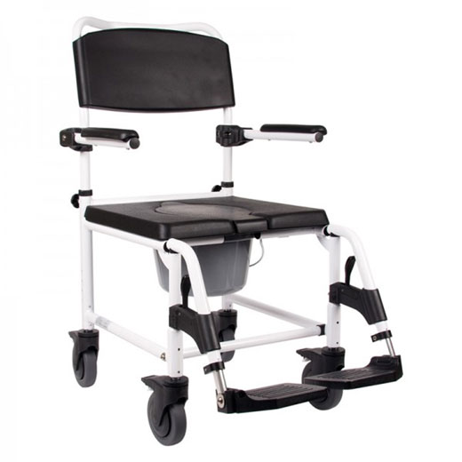 Mobilex Kakadu Schiebe-Dusch- & Toilettenrollstuhl 5”-Räder, Aluminium, HMV, Standard (150kg), Breit (150kg) oder XL (200kg), inkl. Eimer mit Deckel