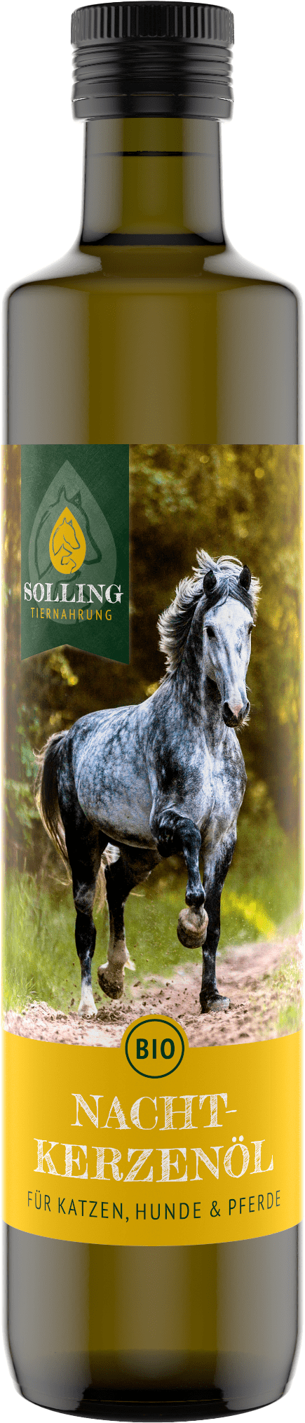 Bio-Nachtkerzenöl aus Kaltpressung ist eine gesunde Futterergänzung für Hunde, Katzen und Pferde. Nachtkerzenöl enthält essenzielle Fettsäuren, die sich bei fütterungsbedingten Mangelerscheidnungen positiv auf die Stoffwechselvorgänge auswirken können.