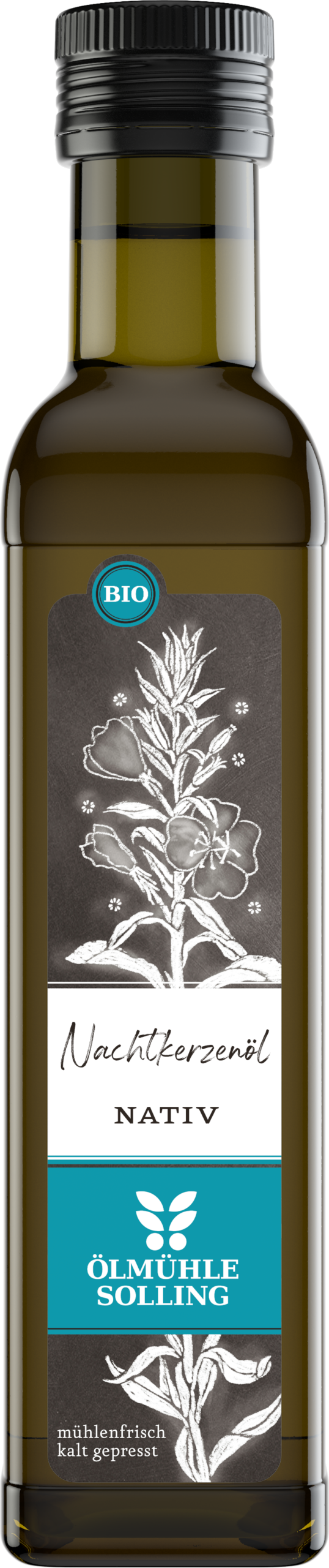 Nachtkerzenöl wird aus Nachtkerzensamen mühlenfrisch kaltgepresst. So bleiben wertvolle Inhaltsstoffe besonders gut erhalten. Es enthält zirka 10 g Gamma-Linolensäure pro 100 g.