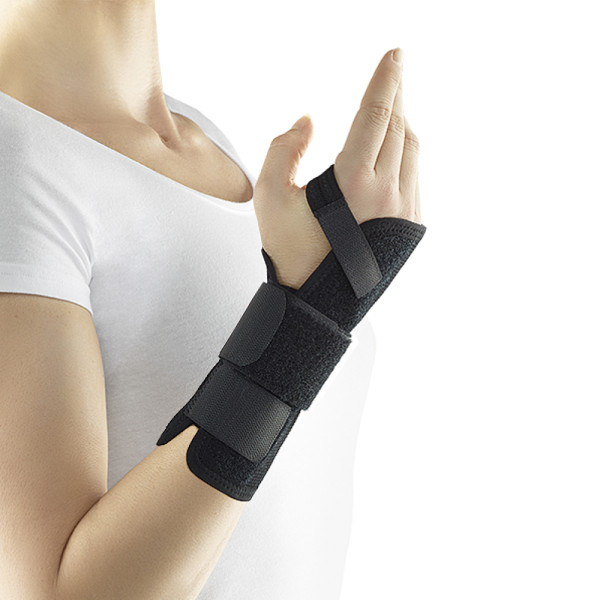 Die Ofa Dynamics ist eine stabilisierende Handgelenkstütze mit einer Aluminium-Verstärkung. Sie hat eine komprimierende Wirkung und kann zur Förderung der Durchblutung und zum Abbau von Schwellungen genutzt werden.Indikationen:Reizzustände des Handgelenks (chronisch, nach Verletzungen oder Operationen)Instabiles HandgelenkSehnenscheidenentzündung (Tendovaginitis)Kontraindikationen:Hauterkrankungen oder -verletzungen im Anwendungsbereich, insbesondere bei Entzündungszeichen wie Rötungen, Erwärmungen oder SchwellungenEmpfindungs- und Durchblutungsstörungen im AnwendungsbereichLymphabflussstörungen sowie nicht eindeutige SchwellungenFarbe:schwarzGröße (Handgelenkumfang):1 = unter 15 cm2 = 16 – 17 cm3 = 18 – 19 cm4 = 20 – 21 cm5 = über 21 cmbitte rechts oder links auswählenPflege:waschbar bis 30° C mit Feinwaschmittel, ohne WeichspülerNicht im Trockner trocknenKeine chemischen Reinigungsmittel oder Bleichmittel verwendenLieferumfang:1 Stück Ofa Dynamics Handgelenkstütze in gewählter Größe und Seite