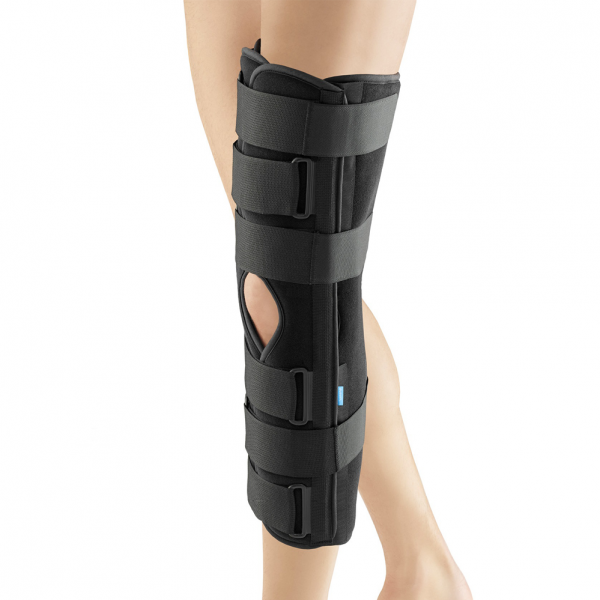 Mit Hilfe von Stabilisierungselementen sorgt die OFA Knielagerungsschiene für eine effektive Ruhigstellung Ihres Kniegelenkes in Beugestellung. Die Beugung bei dieser Knieorthese beträgt 20°. Sie verfügt über eine Patellaaussparung und passt sich durch die Klettverschlüsse exakt Ihrem Knie an. Die Innenseite ist mit Hautfreundlichem Frottee kaschiert, welches für einen angenehmen Tragekomfort sorgt. Zudem wird durch die offene Konstruktion nicht nur ein Einfaches an- und ablegen garantiert, es erleichtert ebenso die Körperpflege und Wundversorgung.Indikationen:Posttraumatisch oder postoperativ zur Ruhigstellung des KniegelenksFarbe:SchwarzGrößen (Körpergröße):40 = bis 155 cm50 = 155 – 180 cm58 = ab 180 cmLieferumfang:1 Stück OFA Dynamics Knielagerungsschiene 20° in gewählter Größe