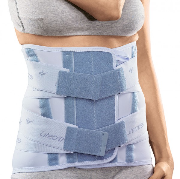 Die LiteCross91 von Orthoservice ist eine Lumbalstütze aus Sensitive Gewebe. Das hohe, elastische Korsett ist atmungsaktiv, maschenfest und antistatisch und kann zur Stabilisierung der Lendenwirbelsäule durch erhöhte zirkuläre Fixation verwendet werden. Entlordosierung durch abdominale Kompression Elastische Spannbänder, die einen variablen und individuell einstellbaren Stützungsgrad erlauben Klettverschluss auf der Vorderseite 4 rückseitige Führungen für die Einführung der mitgelieferten selbstformenden Stäbe Bauchbereich durch querliegende Spiralstäbe verstärkt Indikationen: Lumbalgie Lumboischialgie und Lumbocruralgie Spondylarthrose und lumbale Diskopathien Leichtes Trauma der lumbosakralen Wirbelsäule und paravertebrale lumbale Muskelkontraktur Postoperative Behandlung Farben: creme schwarz blau (siehe Bild) Höhe: vorne: 23 cm hinten: 33 cm Größe (Beckenumfang): 70-80 cm = XS 80-90 cm = S 90-100 cm = M 100-110 cm = L 110-120 cm = XL 120-130 cm = XXL Material: Grundkörper: Polyamid, Elastan, elastische Gurte: Polyamid, Naturlatex Klettverschluss: Polyamid Pflege:   Nicht bleichen  Keine chemische Reinigung  Nicht bügeln  Nicht im Trockner trocknen  Waschanweisung: Handwäsche bis 30° C mit neutraler Seife, nicht in der Nähe von Wärmequellen trocknen Lieferumfang: 1 Stück Orthoservice LiteCross91 Lumbalstütze in gewählter Farbe und Größe