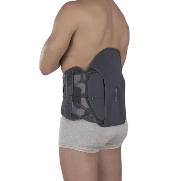 Die Orthoservice Lumbofast Forte ist eine Orthese zur Entlastung durch Überbrückung der Lendenwirbelsäule, mit formstabiler, thermoverformbarer Pelotte und seitlichen Schalen.Gebondetes Grundgewebe (dreidimensionales Netz innen und technisches Gewebe mit exklusivem Print außen): fest und formstabil für maximalen Halt, atmungsaktiv für maximalen KomfortSystem aus Seil und Umlenkrolle für eine optimale Stabilisierung und maximale Zugkraft bei minimalem KraftaufwandZugseile mit anatomisch geformten und leicht zu greifenden EndstückenNur zwei Größen: das System zum Anpassen auf der Rückseite ermöglicht das Zuschneiden auf die entsprechende GrößeThermoformbare, feste Lendenpelotte mit Druckknöpfen angebracht: garantiert Stabilität für die Wirbelsäule und schützt vor dem Kontakt mit den ZugseilenVerstärkung aus Polypropylen zum Schutz des SeilsThermoverformbare Pelotten vorn zum Einstecken in die entsprechenden Taschen an der OrtheseThermoformbares Schalen-Kit (für die Seiten)Indikationen:Lumbalgie (wie z.B. nach Bandscheibenvorfall oder Bandscheibenprolaps)Lumboischialgie und LumbocruralgieSpondylarthrose und lumbale DiskopathienLeichtes Trauma der lumbosakralen Wirbelsäule und paravertebrale lumbale MuskelkontrakturPostoperative BehandlungFolgebeschwerden von Sinterungen der LendenwirbelsäuleBehandlung von Frakturen der QuerfortsätzeDegenerative lumbare SkolioseSpondylose mit oder ohne Lysis der WirbelsäuleIndizierter Wirbelsäulenabschnitt L1-L5Farbe:grauHöhe:vorne 16 cm, hinten 24 cmGröße (Beckenumfang):70 – 105 cm = 1105 – 145 cm = 2Material:Textilteile: Polyamid, Polyester, Polyurethan, Elasthan, BaumwolleKunststoffteile: Polypropylen, PolyamidPflege:Handwäsche bei max. 30° C mit neutraler Seifenicht bleichen, keine chemische Reinigungnicht bügeln, nicht im Trockner trocknenLieferumfang:1 Stück Orthoservice Lumbofast Forte Rückenorthese in gewählter Größe