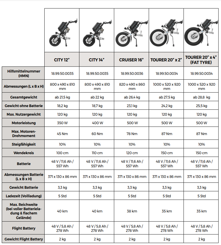 PAWS TOURER Artikel mit individueller Beratung und Bestellungfür unsere regionalen Kunden (Koblenz +100km) So funktioniert es: Kontaktieren Sie uns bevorzugt per E-Mail oder Kontaktformular und teilen Sie uns Ihre Kontaktdaten sowie Ihre Anschrift mit. Unser Experte für den entsprechenden Fachbereich wird sich zeitnah bei Ihnen melden, um einen Beratungstermin zu vereinbaren. Nach der persönlichen Beratung erstellen wir ein maßgeschneidertes Angebot für Sie und bestellen das passende Produkt. Dieser exklusive Service gewährleistet, dass Sie das Produkt erhalten, das perfekt zu Ihnen passt. Wir freuen uns darauf, Sie persönlich zu unterstützen! Das elektrische Zuggerät für Outdoor Abenteuer mit Klassik Drehgriff oder Tetra-Griff Automatische Klemme und Lift oder Manuelle Klemme und Lift große 20” Räder Erleben Sie ein neues Gefühl der Freiheit mit PAWS TOURER! Sind Sie bereit? Das elektrische Zuggerät für Offroad-Abenteuer PAWS Tourer wurde entwickelt, damit Sie auch dort voran kommen, wo andere Rollstühle und Zusatzantriebe haltmachen. Das Zuggerät hat den längsten Radstand aller PAWS-Modelle und überwindet selbst Wurzeln und andere Unebenheiten mit Leichtigkeit. Mit einem 20-Zoll-Rad und einem breiten 4-Zoll-Reifen ist PAWS Tourer ideal für Ihr nächstes Offroad-Abenteuer. Dieser Rollstuhlzusatz wurde hauptsächlich für den Einsatz in unwegsamem Gelände entwickelt und schreckt auch vor Sand, Steinen oder Kieseln nicht zurück! ERLEBEN SIE GRENZENLOSE MOBILITÄT Der PAWS Tourer ermöglicht es Ihnen, für Sie bisher unzugängliches Terrain zu erkunden. Er wurde in erster Linie für den Einsatz im Gelände entwickelt und meistert Sand, Schotter, Kopfsteinpflaster und vieles mehr mit Leichtigkeit. Dank des großen 20-Zoll-Antriebsrads können Sie Hindernisse wie Baumwurzeln und unebenes Gelände überwinden und trotzdem eine ruhige Fahrt genießen. Er verfügt über den längsten Radstand der PAWS-Produktreihe und sorgt somit für maximale Laufruhe und Stabilität während Ihres Ausflugs. rehaSense PAWS TOURER Führende Ingenieure, Ergonomen und Therapeuten haben mit Rollstuhlfahrern zusammengearbeitet, um das komfortabelste und benutzerfreundlichste elektrische Zusatzgerät auf dem Markt zu entwickeln: PAWS, kurz für Power Assisted Wheelchair Systems. PAWS ist eine großartige Alternative zum Auto und eignet sich ideal für längere Fahrten in der Stadt und auf dem Land. Es verfügt über das einfachste und universellste Andocksystem auf dem Markt und bietet eine Reihe praktischer Funktionen, die die Benutzung einfach und bequem machen. Jeder PAWS schafft seine eigene Geschichte der Freiheit – treffen Sie Familie und Freunde, nehmen Sie an gemeinsamen Aktivitäten teil oder gehen Sie allein auf ein Abenteuer. Die drei PAWS-Modelle CITY, CRUISER und TOURER unterscheiden sich jeweils durch ihren Radtyp und wurden für unterschiedliche Geländetypen entwickelt: Das Modell CITY kann mit einem 12- oder 14-Zoll-Vorderrad bestellt werden und ist vor allem für die Stadt gedacht. Für alle, die gerne unterwegs sind, ist der CRUISER die perfekte Wahl. Das leistungsstarke Gerät mit 16”-Rädern kann in der Stadt oder auf Waldwegen eingesetzt werden. TOURER hat mit seinen 20”-Rädern den längsten Radstand der drei PAWS-Modelle und überwindet selbst Baumwurzeln und andere Unebenheiten mit Leichtigkeit. Alle Modelle haben eines gemeinsam: ein unvergessliches Fahrerlebnis PAWS Ergonomie PAWS bringt Komfort auf die nächste Stufe. Ingenieure, Ergonomen und Therapeuten haben gemeinsam daran gearbeitet, das bequemste Produkt auf dem Markt zu entwickeln. Rehasense hat es geschafft! PAWS verfügt über das einfachste und universellste Andocksystem auf dem Markt. Lange Hebelarme und Quick Release-Klemmen machen das manuelle Klemmen schnell und einfach. Automatisches Klemmen und Heben ist so einfach wie das Umlegen eines Schalters – eine wirklich bahnbrechende Lösung. Sie erhalten eine Vielzahl von Möglichkeiten, den Lenker so einzustellen, dass er optimal für Sie passt. PAWS Zubehör Tragetasche Korb Luftpumpe Der Standard-Lithium-Ionen-Akku 48V11.2Ah liefert leistungsstarke 556 Watt und ist universell einsetzbar. Dank des praktischen Riemengriffes rastet er leicht in die Halterung ein und wird mit einem eigenen Schlüssel und Schloss gesichert. Die Flugbatterie /Reisebatterie (300 Wh) hat eine geringere Leistung, damit sie gemäß IATA-Gefahrgutvorschriften in Passagierflugzeugen befördert werden kann. Eine Mitnahme im Flugzeug sollte der Fluggesellschaft mindestens 48 Stunden im Voraus angekündigt werden. PAWS Individuelle Anpassung Richten Sie Ihr PAWS-Modell so ein, dass es Ihrem Stil und Ihren Bedürfnissen entspricht. Bei der Auswahl der besten Konfiguration können Sie Folgendes in Betracht ziehen: drei PAWS-Modelle (12“-, 16“– und 20“– Räder), manuelles oder automatisches Verriegeln und Anheben, zwei Modelle der Lenkersteuerung und sogar die Größe oder Art des Rades. Abschließend nehmen Sie eine Feinabstimmung der Lenkereinstellung vor und wählen Ihren Fahrmodus. die drei PAWS Modelle die sechs wählbaren Varianten + Funktionen
