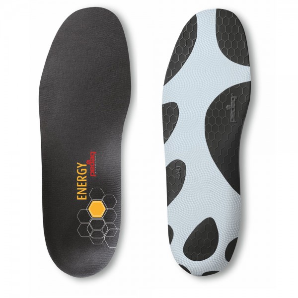 Die pedag ENERGY MID ist die ideale Ausdauersohle für mehr Leistung und Dynamik. Sie eignet sich für alle Sportarten, für ausdauernderes und verletzungsarmes Training und nachhaltigen Spaß am Sport.Dämpft die Aufprall-Energie ganzflächigStabilisiert und schützt den Fuß Beugt Fuß-, Knie- und Gelenkschmerzen vorFunktioneller High-Tech-Stoff der Lauffläche: rutschfest und feuchtigkeitsableitendVerteilt und reduziert die BelastungSchnell trocknend und thermisch verformbarFür Männer und FrauenMID – für mittleres normale Fußgewölbe:Vor- und Mittelfuß und Ferse haben Kontakt zum BodenLängsgewölbe ist erkennbarGröße (Schuhgröße):36 37 – 46 48pedag ENERGY Sportsohlen Video: