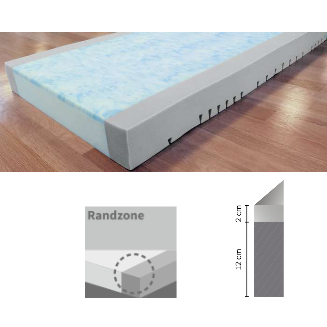 Pflegebettmatratze Sky-fit, 2-Schicht-Matratze, 2cm Sky-therm-Auflage 12cm Kaltschaum-Basis, Randverstärkung, inkl. waschbarem Wendebezug