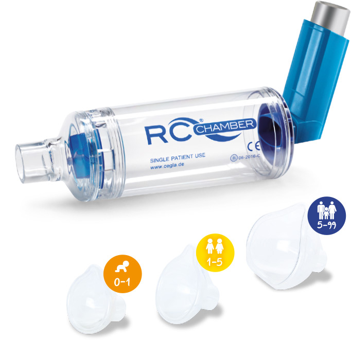 RC-Chamber Inhalierhilfe Bei Lungenerkrankungen wie Asthma werden Medikamente zur Inhalation meist in Form von Dosieraerosolen verabreicht. Inhalierhilfen wie der RC-Chamber optimieren die Anwendung von Dosieraerosolen: Produktmerkmale Inhalierhilfe bei chronischen Atemwegserkrankungen. die Koordination zwischen Auslösen und Einatmen des Dosieraerosols entfällt. filtert die großen, nicht lungengängigen Partikel aus, vermindert so Ablagerungen und Pilzbefall im Mund- und Rachenraum. der RC-Chamber verhindert Reizungen durch Verdunstungskälte. die therapeutische Wirkung der Medikamente wird optimiert. nur für den Ein-Patienten-Gebrauch. Universaladapter – mit allen Dosieraerosolen kompatibel. austauschbare Silikonmasken – Masken stehen in verschiedenen Größen zur Verfügung – passen sich weich und angenehm der Gesichtsform an. Hilfsmittel-Positions-Nr. 14.24.03.1001 Masken sind Zubehör Hygienisch zuverlässige Reinigung bis zu einer maximalen Temperatur von 100°C oder im RC-Clean Reinigungsbeutel für die Mikrowelle. Einfach in der Anwendung. Inhalierhilfe für Kinder, Säuglinge, Erwachsene und tracheotomierte Patienten verfügbar. Masken einzeln erhältlich und austauschbar. Die beste Medikamentendeposition wird allerdings über das Mundstück erreicht. Sicher im Alltag und im Notfall. Mit Notfallplan, Einatemkontrolle und Sicherheitsbeutel. Der RC-Chamber® ist spülmaschinenfest. Da jedoch Rückstände nach dem Spülgang verbleiben könnten, raten wir von dieser Art der Reinigung ab. Die Wirkung derRC-Chamber Therapie Ohne RC-Chamber kommt es zu einer starken Medikamentenablagerung im Mund- und Rachenraum Mit RC-Chamber verbessert sich die Medikamentenverteilung in der Lunge. Bitte lesen Sie vor Gebrauch die Bedienungsanleitung und halten Sie sich an die Anweisungen des Herstellers. Änderungen vorbehalten. Abbildungen können vom Original abweichen.