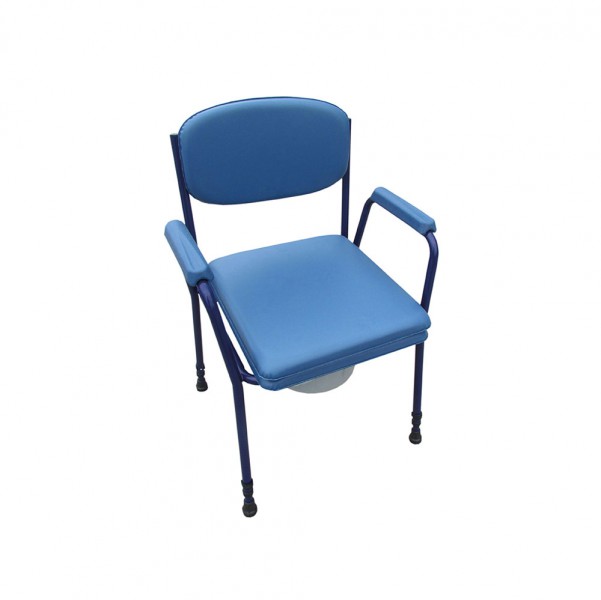 Der RFM Toilettenstuhl ist feststehend und kann somit beispielsweise neben das Bett gestellt werden. Korrosionsbeständig Gepolsterter Sitz, gepolsterte Armlehnen und gepolsterte Rückenlehne aus pflegeleichtem PVC Abnehmbarer Sitz Eimer von oben entnehmbar Höhenverstellbar Farbe: Blau Maße: Höhe: 86 – 101 cm Breite: 57 cm Tiefe: 50 cm Sitzhöhe: ca. 47 – 62 cm Sitztiefe: ca. 41,5 cm Sitzbreite: ca. 45 cm Max. Belastbarkeit: 136 kg Gewicht: 6,7 kg Lieferumfang: 1 Stück RFM Toilettenstuhl feststehend Inkl. Eimer