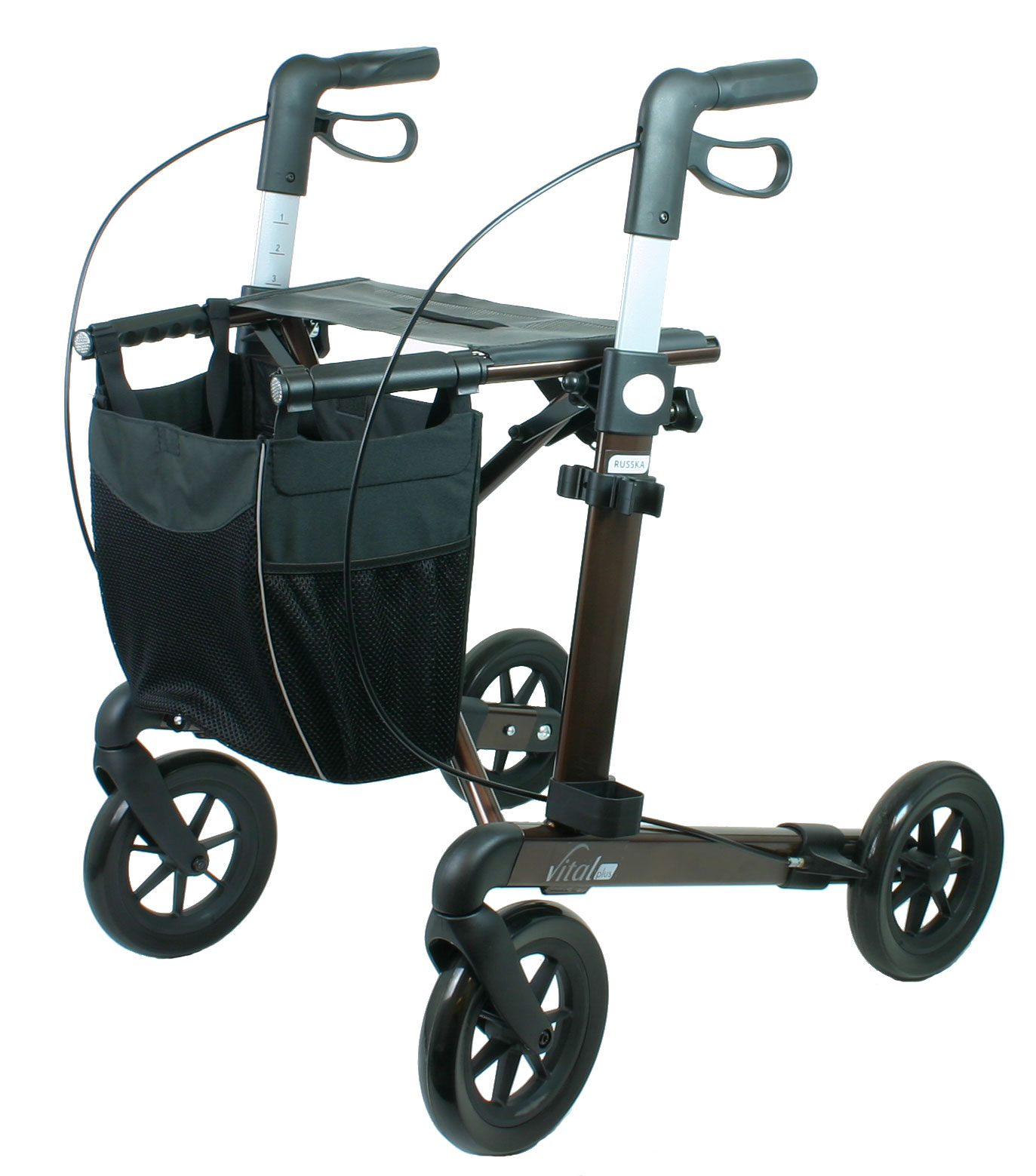 Russka Rollator Vital 54 plus Leichtgewichtsgehwagenschick und aktiv im Alltag unterwegs – geeignet für kleinere Personeneleganter Begleiter auf allen Wegenweiche PU-BereifungEinkaufsnetz verfügt über eine Innentaschebesonders leichtes Eigengewicht von nur 6,8kgGehwagen mit schickem AluminiumrahmenGehhilfe mit hoher Belastbarkeit bis 150kg Die Vorteile des Russka Rollator Vital plus 54 (small)Dieser Rollator ist der elegante Begleiter auf allen Wegen, zum Einkaufen oder auf ReisenDer Aluminiumrahmen ermöglicht bei hoher Stabilität ein besonders leichtes EigengewichtDie ergonomischen Griffe liegen gut in der Hand und sind auch bei längeren Strecken sehr komfortabelDie Nummerierung auf der Innenseite der Schiebegriffe ermöglicht ein leichtes Wiederfinden der benötigten GriffhöheEin Sitznetz lässt entspannte Ruhepausen zwischendurch zuReflektoren an den Seiten und in den Handgriffen sind im Dunkeln gut sichtbar und sorgen für mehr SicherheitDie integrierten Kantenabweiser schützen Ihre Möbel, Türrahmen und RollatorSchmal zusammen gefaltet lässt sich der Rollator vital Platz sparend überall verstauenDie Schlaufenbremse lässt sich leicht bedienen, sie ist als Betriebs- und Feststellbremse zu verwendenGroße Schraubköpfe erleichtern die Arretierung der HöhenverstellungDie faltbare Tasche ist einfach zu befestigen und abzunehmen, sie bietet Platz für den EinkaufDer leichte Faltmechanismus und die integrierte, magnetische Faltsicherung ermöglichen den einfachen Transport auf Reisen in Bahn, Bus oder PKWAn beiden Hinterrädern befinden sich Stufenhilfen für die leichte Überwindung von Schwellen und Bordsteinen Bitte lesen Sie vor Gebrauch dieses Rollator Vital 54 aufmerksam die Bedienungsanleitung und halten Sie sich an die Anweisungen des Herstellers. Änderungen vorbehalten. Abbildungen können vom Original abweichen.