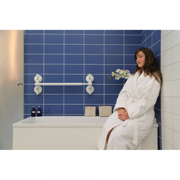 Der MOBELI Haltegriff QuattroPlus (420 – 545 mm) ist mit einer Nennlast von bis zu 100 kg die Hochlast-Variante des mobilen Haltegriffes.Er ist mit einem bis dahin weltweit einzigartigem Sicherheitssystem ausgestattet, welches den Haftzustand des Haltegriffes an der Wand permanent misst. Dabei wird das Vakuum unter den Saugtellern kontrolliert und die am Griff angebrachten Kippschalter (Warn-Wippe) klappen nach außen, wenn der Griff beginnt, sich von der Wand zu lösen. flexibel zu befestigen durch integrierte Kreuzelemente – egal ob an Wand oder über Eck auf allen planen porendichten Flächen verwendbar auch als Umsetzhilfe verwendbar hervorragend geeignet als Basis für Kombinationen verschiedener MOBELI-Elemente Teleskopstange verstellbar in der Länge ermöglicht Anbringen an Fliesen unabhängig vom Fliesenraster Griffstange 35 mm Durchmesser Teleskop-Bereich 125 mm Schnellverriegler ohne Werkzeug Bohren montiert und abgenommen einfach Kipphebel umlegen Greiflänge Max. Nutzergewicht: 420 – 545 mm 160 kg Lieferumfang: 1 MOBELI Haltegriff QuattroPlus 420 – 545 mm