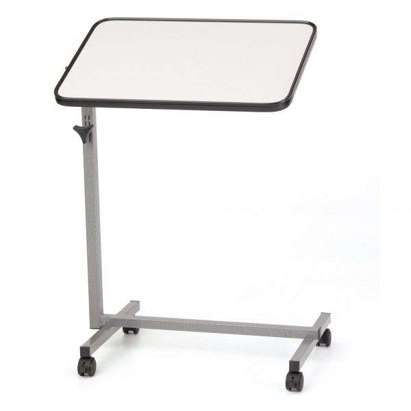 Der Beistell-Tisch Basic ist zur Verwendung im häuslichen Bereich vorgesehen und dient in der täglichen Pflege-Praxis als wertvolle Unterstützung von pflegebedürftigen Menschen, die meistens bettlägerig sind. Der Betttisch erleichtert  das Essen und Trinken im Bett und eignet sich auch zum Lesen und Schreiben. Tischplatte kippbar, mit erhöhter Umrandung Stufenlose Höhenverstellung: 70 bis 116,5 cm Maße Tischplatte: 40×60 cm Max. Belastbarkeit: 10 kg 4 Leichtlaufrollen, alle mit Bremse Farbe: weiß Material: Säule und Fuß: Stahl Rollen: Kunststoff Tischplatte: Holzplatte mit Kunststoffrahmen