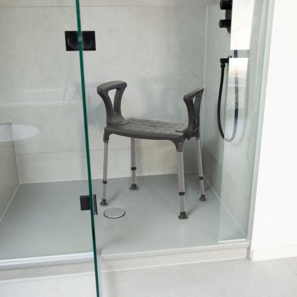 Der Russka laguna Duschhocker hat ein modernen Design, ist leicht und kann auch in kleinen Duschen verwendet werden.Armlehnen mit breiter AuflageflächeWerkzeuglose MontageMaße:Stellfläche (L x B): 57 – 59,5 x 36 – 38 cmSitzfläche (L x B): 50 x 30,5 cmSitzhöhe (7-fach verstellbar): 39 – 54 cmArmlehnen (L x H x T): 26 x 23 x 6 cmBreite zwischen den Armlehnen: 49,5 cmGewicht: 3 kgMax. Benutzergewicht: 150 kgMaterial:Sitz, Armlehnen: Polypropylen mit 30% CalciumcarbonatStreben und Beine: eloxiertes AluminiumAuflagekappen und Füße: thermoplastisches GummiSchrauben: rostfreier StahlSonstige Teile: PolyethylenFarbe:weißschwarzLieferumfang:1 Stück Russka laguna Duschhocker mit Armlehnen in schwarz oder weiß