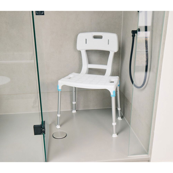 Der Russka laguna Duschstuhl hat eine breite Sitzfläche und bietet Ihnen Komfort beim Duschen in einem modernem Design.Mit RückenlehneMaße:Gesamtmaß (B x T x H): 61,6 x 44,7 x 90 cmStellfläche (L x B): 57 – 59,5 x 36 – 38 cmSitzfläche (L x B): 51 x 30 cmSitzhöhe (7-fach verstellbar): 39 – 54 cmMaße Rückenlehne: 30 – 35 x 14,5 cmHöhe Rückenlehne: 32 cmGewicht: 2,3 kgMax. Benutzergewicht: 150 kgMaterial:Sitz: Polypropylen mit 30% CalciumcarbonatStreben und Beine: eloxiertes AluminiumAuflagekappen und Füße: thermoplastisches GummiSchrauben: rostfreier StahlSonstige Teile: PolyethylenFarbe:weißLieferumfang:1 Stück Russka laguna Duschstuhl mit Rückenlehne