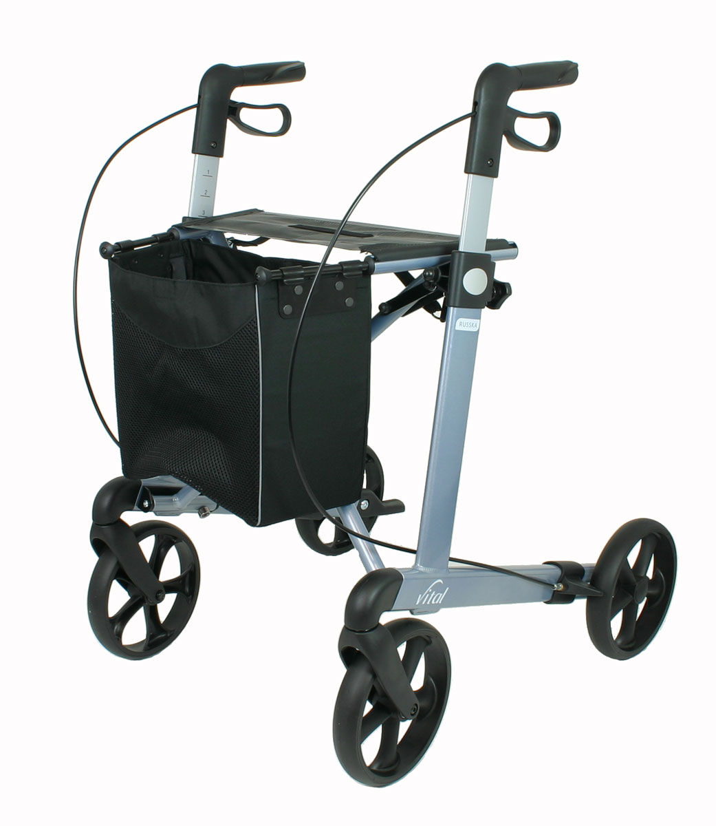 Russka Rollator Vital 54 eisblau Leichtgewicht Mit dem Rollator schick und aktiv im Alltag unterwegs – geeignet für kleinere Personen Rollator ein eleganter Begleiter auf allen Wegen Gehwagen mit sehr leichtem Eigengewicht von nur 6,8 Kg Rollator Griffhöhe bis zu 85 cm schicker Aluminiumrahmen Rollator mit hoher Belastbarkeit bis 150kg Leichtgewichtsrollator Die Vorteile des Rollator Russka Vital 54 (small) in eisblau Dieser Rollator ist der elegante Begleiter auf allen Wegen, zum Einkaufen oder auf Reisen Der Aluminiumrahmen ermöglicht bei hoher Stabilität ein besonders leichtes Eigengewicht Die ergonomischen Griffe liegen gut in der Hand und sind auch bei längeren Strecken sehr komfortabel Die Nummerierung auf der Innenseite der Schiebegriffe ermöglicht ein leichtes Wiederfinden der benötigten Griffhöhe Ein Sitznetz lässt entspannte Ruhepausen zwischendurch zu Reflektoren an den Seiten und in den Handgriffen sind im Dunkeln gut sichtbar und sorgen für mehr Sicherheit Die integrierten Kantenabweiser schützen Ihre Möbel, Türrahmen und Rollator Schmal zusammen gefaltet lässt sich der Rollator vital Platz sparend überall verstauen Die Schlaufenbremse lässt sich leicht bedienen, sie ist als Betriebs- und Feststellbremse zu verwenden Große Schraubköpfe erleichtern die Arretierung der Höhenverstellung Die faltbare Tasche ist einfach zu befestigen und abzunehmen, sie bietet Platz für den Einkauf Der leichte Faltmechanismus und die integrierte, magnetische Faltsicherung ermöglichen den einfachen Transport auf Reisen in Bahn, Bus oder PKW An beiden Hinterrädern befinden sich Stufenhilfen für die leichte Überwindung von Schwellen und Bordsteinen Bitte lesen Sie vor Gebrauch dieses Rollator Vital 54 aufmerksam die Bedienungsanleitung und halten Sie sich an die Anweisungen des Herstellers. Änderungen vorbehalten. Abbildungen können vom Original abweichen.