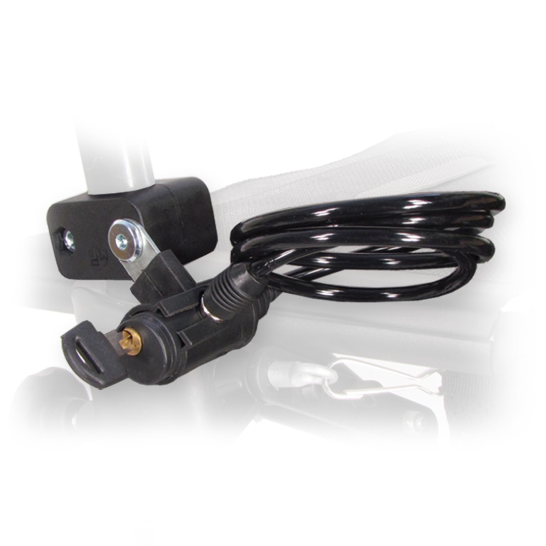 Schloss zur Festmontage an Rollatoren und Rollstühlen, Stahlseil, für Rohre ø 22 oder 25mm, Länge ca. 90cm (#1236301)