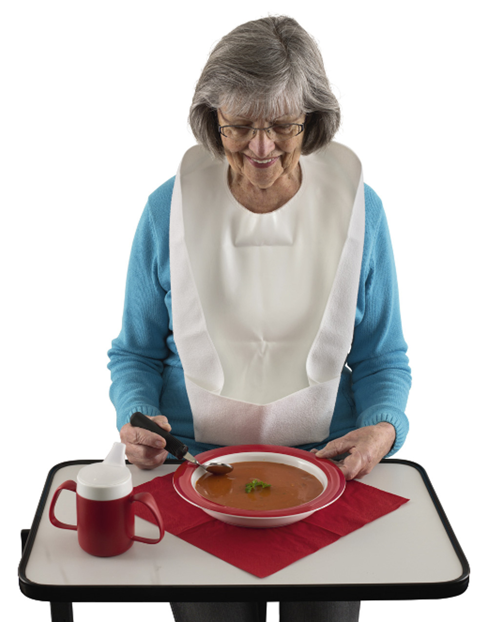 Russka Schutzserviette mit Auffangtasche schützt die Kleidung vor Speiseflecken Die Russka Schutzserviette mit Auffangtasche schützt die Kleidung der Person vor herunterfallenden Speiseresten. Die Serviette hat eine PVC-Oberseite und eine Baumwoll-Unterseite. Dreht man die Baumwoll-Seite nach oben, wird zusätzlicher Schmutz abgehalten. Der untere Teil der Schutzserviette ist mit Druckknöpfen ausgestattet, der zugeknöpft als Auffangtasche dient. Der Benutzter dieser Schutzserviette ist sicher vor Verschmutzungen geschützt und kann dadurch an Selbstvertrauen gewinnen. Die Vorteile der Russka Schürze mit Auffang-Tasche schützt Wäsche und Kleidung vor Verschmutzung Baumwollseite nimmt Feuchtigkeit gut auf mehr Selbstvertrauen durch zuverlässigen Schutz kann beidseitig getragen werden unterer Teil ist mit Druckknöpfen als Auffangtasche verwendbar Bitte lesen Sie vor Gebrauch dieses Russka Schürze mit Auffang-Tasche aufmerksam die Anweisungen des Herstellers. Änderungen vorbehalten. Abbildungen können vom Original abweichen.
