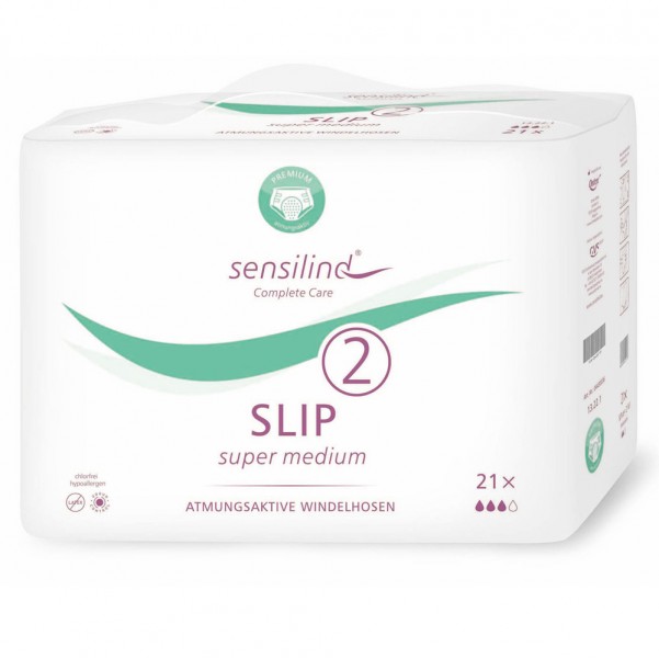 Der Sensilind Slip Super 2 M ist eine Windelhose für mittelere bis schwere Inkontinenz.Klebe-Klettverschluss: Elastisch und wiederverschließbarAtmungsaktives Material durch textilähnliches Vlies (“Backsheet”)Besonders weiches Material auf der gesamten Oberfläche, leitet Flüssigkeit sofort in den Saugkern und schützt vor Rücknässung bei angenehm trockener OberflächeSpezielle Materialmischung aus Zellstoff (”Virgin Pulp”) kombiniert mit Superabsorber für schnelle und hohe Gesamtabsorption und GeruchsbindungWeich, anatomisch geformt und flüssigkeitsabweisend, perfekter Schutz gegen seitliches Auslaufen Saugstärke:3 4Größe M:Hüftumfang 80 – 130 cmLieferumfang:1×21 Stück Sensilind Slip Super 2 M