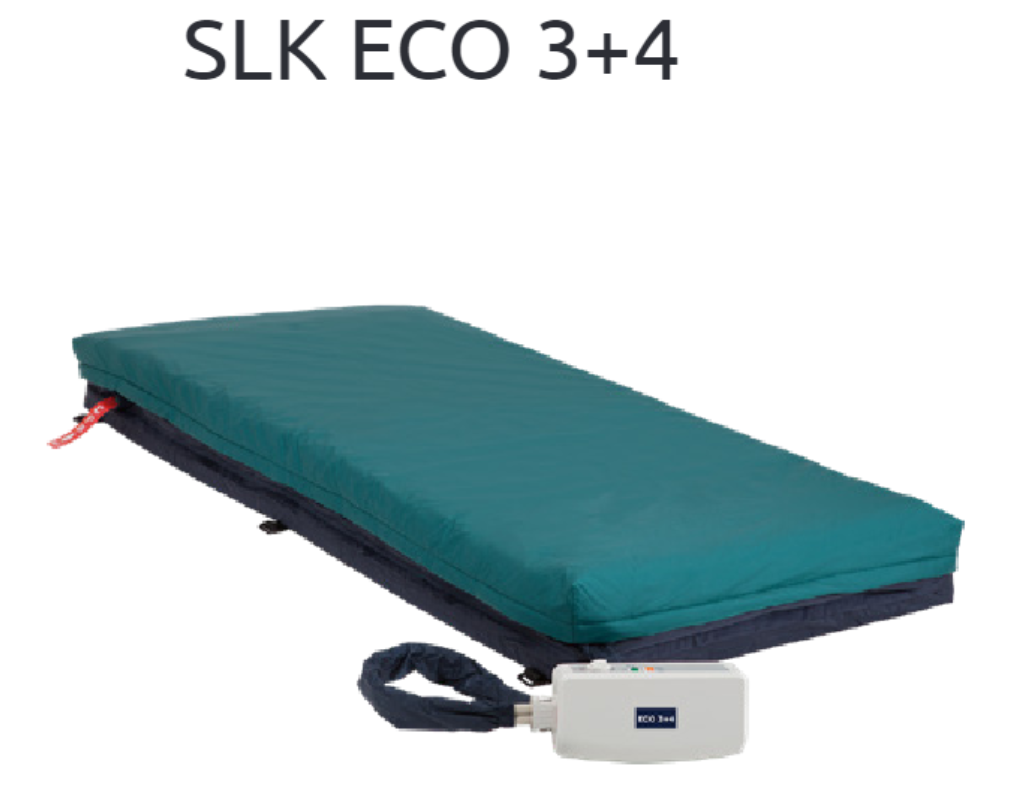 SLK ECO 3+4 Wechseldruck-Matratzenersatzsystem (keine extra Unterlage notwendig) 19 x 90 x 200 cm Anti-Dekubitus-Matratze inkl. Aggregat Bis Stadium 4 nach EPUAP Statik- und Wechseldruckmodus Hilfsmittel-Nr.: 11.29.08.1012 Die Vorteile der SLK ECO 3+4 komplettes Matratzenersatzsystem für Bettmaß: 90 x 200 cm Gesamthöhe: 19 cm Statik- und Wechseldruckmodus bis Stadium 4 nach EPUAP SLK Soft-Care-TexTM Bezug für Körpergewicht 30-170 kg Bitte lesen Sie vor Gebrauch von diesem Produkt aufmerksam die Bedienungsanleitung und halten Sie sich an die Anweisungen des Herstellers. Änderungen vorbehalten. Abbildungen können vom Original abweichen.