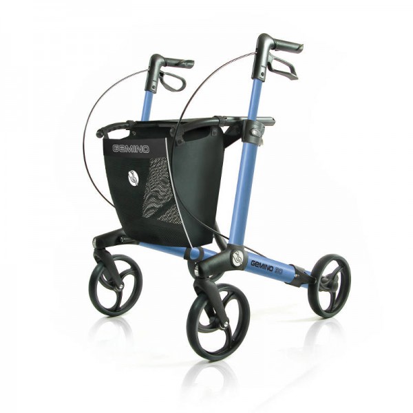 Der Gemino 30 Rollator von Sunrise Medical ist extrem stabil und zugleich leicht (nur 7,1 kg). Der Rollator ist für eine Anwendung auf ebenem und festem Untergrund im Innen- und Außenbereich geeignet. Er wurde als Gehhilfe für Personen mit reduzierter Muskelkraft, reduzierter Beweglichkeit sowie eingeschränkter Mobilität und Standsicherheit entwickelt.Der Gemino lässt sich schnell und einfach an die individuellen Bedürfnisse anpassen. Durch den cleveren Klappmechanismus steht der Rollator auch im zusammengeklappten Zustand und lässt sich einfach transportieren. Zum Zusammenfalten muss man einfach nur an der Sitzschlaufe nach oben ziehen. Außerdem ist diese Gehhilfe mit leichtgängigen Bremsen und Rädern ausgestattet um eine optimale Sicherheit zu gewähren.Für den Einkauf befindet sich außerdem ein Netz am Rollator. Dieses kann bei Bedarf sogar abgenommen werden. Die integrierte Ankipphilfe erleichtert das Überwinden von Bordsteinen und kleineren Absätzen.Technische Daten:Gesamtlänge: 65 cmGesamtbreite: 60 cmSchiebegriffhöhe vom Boden: 78 – 100 cmBreite zwischen den Schiebegriffen: 47 cmSitzhöhe: 62 cmHöhe gefaltet: 80 cmLänge gefaltet: 65 cmBreite gefaltet: 23 cmGesamtgewicht: 7,14 kgZul. Nutzergewicht: 150 kgZul. Belastung des Netzes: 5 kgFarbe:saphirblauDie empfohlene Körpergröße des Nutzers liegt bei 150-200 cm.Der Rollator ist bei Anlieferung bereits vollständig montiert. Alles was Sie tun müssen ist:Falten Sie den Rollator auseinanderStellen Sie die Schiebegriffe auf die richtige Höhe einVideo: