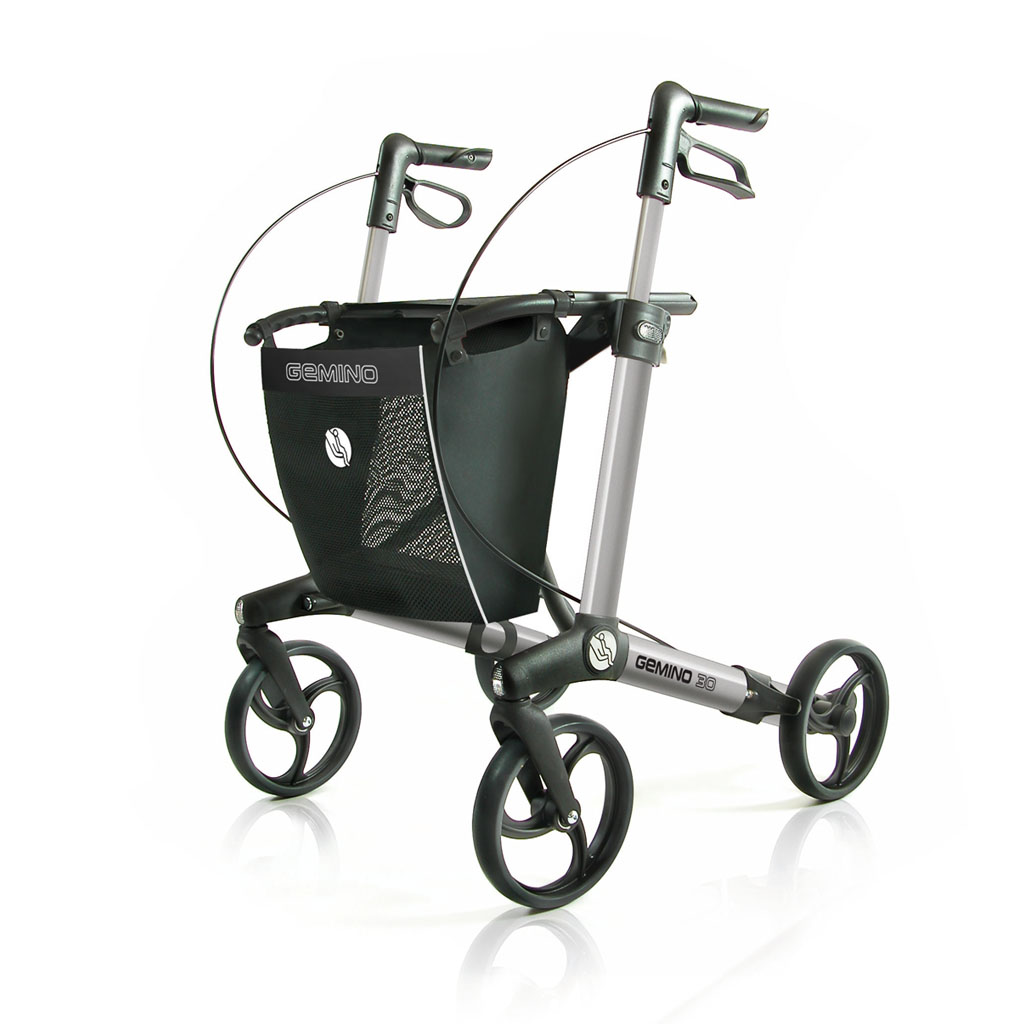 Sunrise Medical Gehwagen Gemino 30 Titanium Rollator mit Stockhalter Leichtgewichtsrollator Gehwagen, Rollator mit Stockhalterung Gehhilfe mit abnehmbarer Korbtasche Rollator mir seitlichen Reflektoren Die Vorteile des Sunrise Medical Gemino 30 Titanium Der Rollator Gemino ist als Gehhilfe für die Anwendung im Innen- und Außenbereich entwickelt worden Die serienmäßigen Bremsen sind besonders einfach zu bedienen Die Gehhilfe bleibt in zusammengefalteter Stellung von alleine stehen und kann Ihnen auch dann Unterstützung bieten Rollator mit hoher Belastbarkeit bis 150 kg Ein-Hand-Faltmechanismus zum einfachen Falten ohne Kraftaufwand Leichtlaufrollen für angenehmen Fahrkomfort Der Rollator Gemino lässt sich schnell an Ihre individuellen Bedürfnisse anpassen und ist mit stabilen, leicht laufenden Rädern ausgestattet. Der Gemino Rollator kann zusammengefaltet werden und ist so noch einfacher zu transportieren. Sehr leichter Rollator mit nur 7,14 kg Abnehmbare Korbtasche bis zu 5 kg belastbar Reflektoren seitlich, vorne und hinten sorgen für mehr Sicherheit bei Dunkelheit Gehwagen mit Feststellbremsen Leichtgewichtsrollator / Leichtgewichtsgehwagen Bitte lesen Sie vor Gebrauch dieses Sunrise Medical Gemino 30 Titanium aufmerksam die Bedienungsanleitung und halten Sie sich an die Anweisungen des Herstellers. Änderungen vorbehalten. Abbildungen können vom Original abweichen.