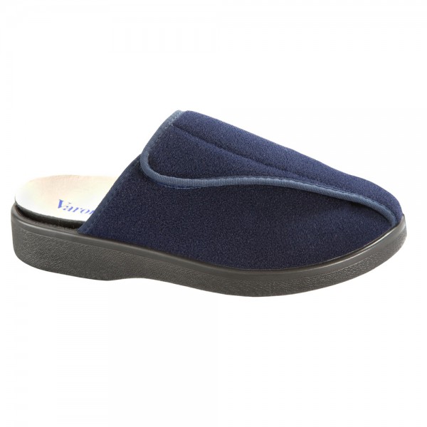 Der Varomed Klettpantoffel BALI besitzt eine variable Ristlasche aus PA-Velours. Damit lässt er sich sehr gut als Hausschuh benutzen. Nahezu vollständig zu öffnen Optimale Trageeigenschaften, selbst bei Trägern starker Verbände Eingelegtes Weichschaumfußbett mit Lederbezug Für persönliche Einlagen geeignet Waschbar bis 30°C Material: PA-Velours und Frotteefutter Farbe: marine Größe: Weite: L (sehr weit) siehe Auswahl Lieferumfang: 1 Paar Varomed BALI Klettpantoffel