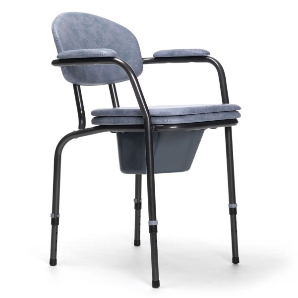 Der Vermeiren Toilettenstuhl ist ein starrer Stuhl mit einem Kunstleder-Bezug. Er hat stabile, feste Armlehnen, eine starke Rückenlehne und ist höhenverstellbar.Maße:Max. Belastung: 120 kgGesamthöhe: 75,5 – 88,5 cmSitzhöhe: 49 – 58 cmGesamtbreite: 62 cmSitzbreite: 43 cmAbstand zwischen den Armlehnen: 47 cmRückenlehnenhöhe: 40 cmGesamttiefe: 65 cmSitztiefe: 45 cmInnenöffnung (LxB): 27 x 22 cmGewicht: ca. 9 kgFarbe:schwarzgrauLieferumfang:1 Stück Vermeiren Toilettenstuhl starr, höhenverstellbar