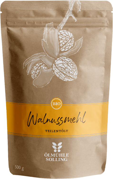 Für dieses feine Walnussmehl werden ungeröstete Bio-Walnüsse schonend entölt und vermahlen. Ideal für feine Backwaren und Kekse. Vegan und laktosefrei.