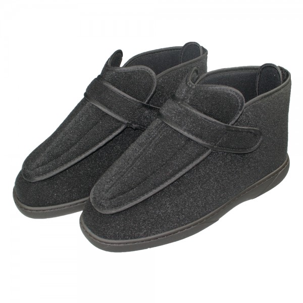 Der Werkmeister Wewa Ped Rehaschuh ist ein hoher Hausschuh mit einem weiten Einstieg und einem großzügig bemessenen und nahtlosen Innenbereich. Dadurch ist der Schuh ideal als Verbandschuh geeignet.Da er bis zu den Knöcheln geht, bietet er zusätzliche Stabilität. Breite Klettverschlüsse Rutschhemmende Sohle Geschlossene Fußspitze Indikationen: Postoperativ bei Eingriffen am Fuß und nach Fußverletzungen Wunden und Ulcerationen Starke Schwellneigung der Füße Farbe: schwarz Größen (Schuhgröße): 36-46 Lieferumfang: 1 Paar Werkmeister Wewa Ped Rehaschuhe hoch in gewählter Größe